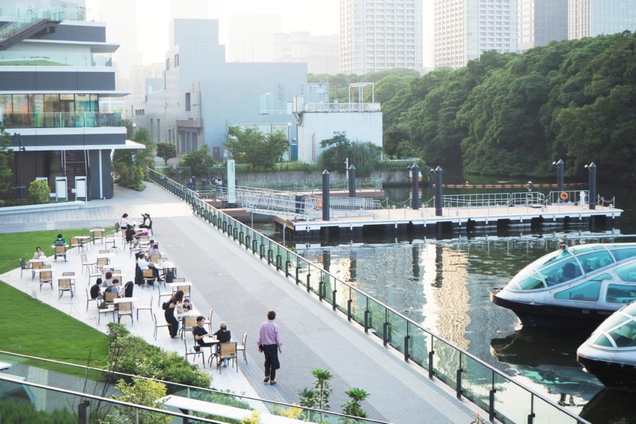2020年に開業した「WATERS takeshiba(ウォーターズ竹芝)」は、都市部にありながら海と豊かな緑が楽しめる複合施設です。水辺には「竹芝干潟」が設けられており、かつて東京湾に多く生息した貝類や甲殻類などの多様な生き物が生息できる環境の保全、再生を目指しています。毎月第2日曜日には時間限定で干潟が開放されるほか、「夜の生き物観察会」も開催されるなど、環境学習の場としても活用されています。