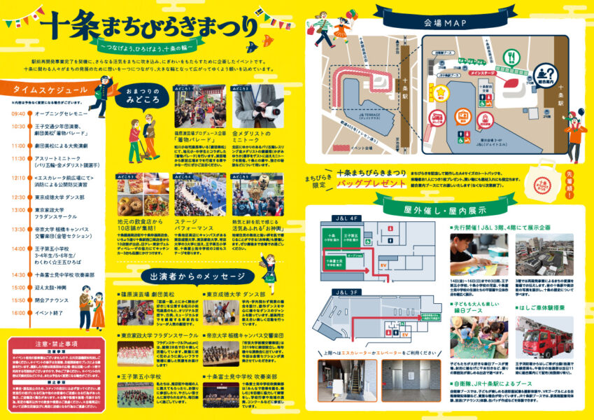 サブタイトルは「つなげよう、ひろげよう、十条の輪」。十条に関わる人々が想いを一つに、地域の発展のために人と人、人とまちがつながり、大きな輪となって広がってゆくように、といった願いが込められています。