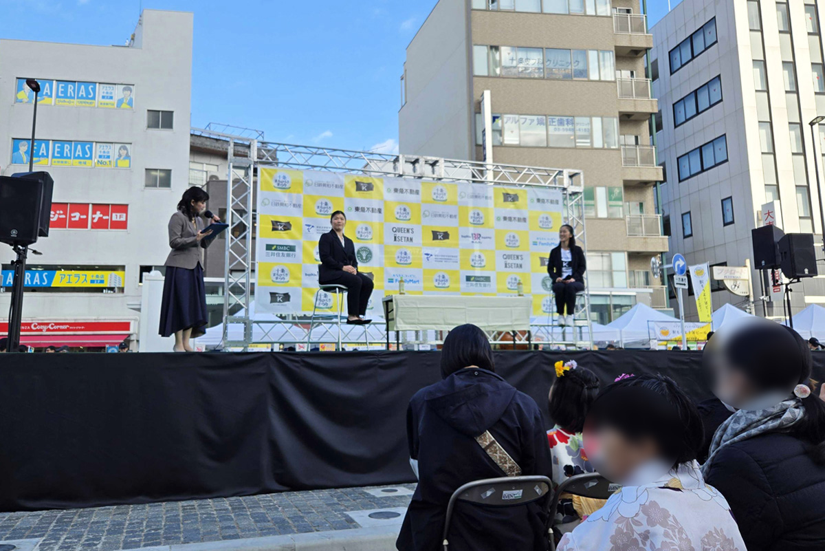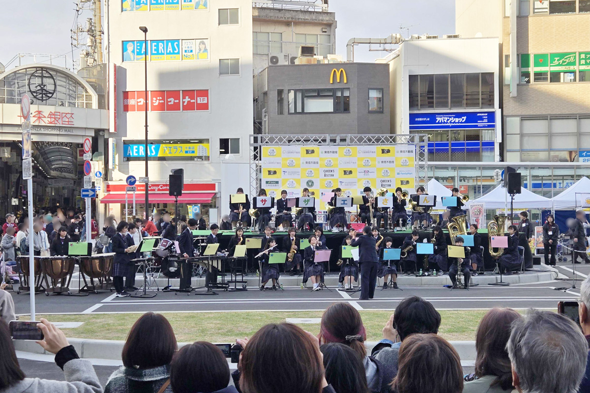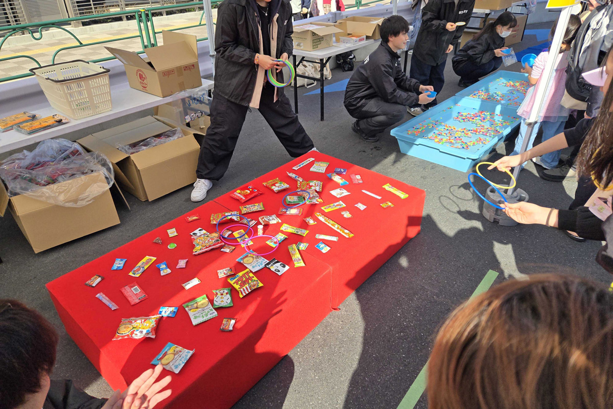 新しく整備された駅前広場と補助第73号線一帯を活用し、ステージパフォーマンスや地元商店街による7つの飲食ブース、スタジアムグルメが楽しめるキッチンカーが出店されたほか、縁日コーナーや制服着用・撮影体験、屋内展示企画など、バラエティ豊かなコンテンツが展開されました。