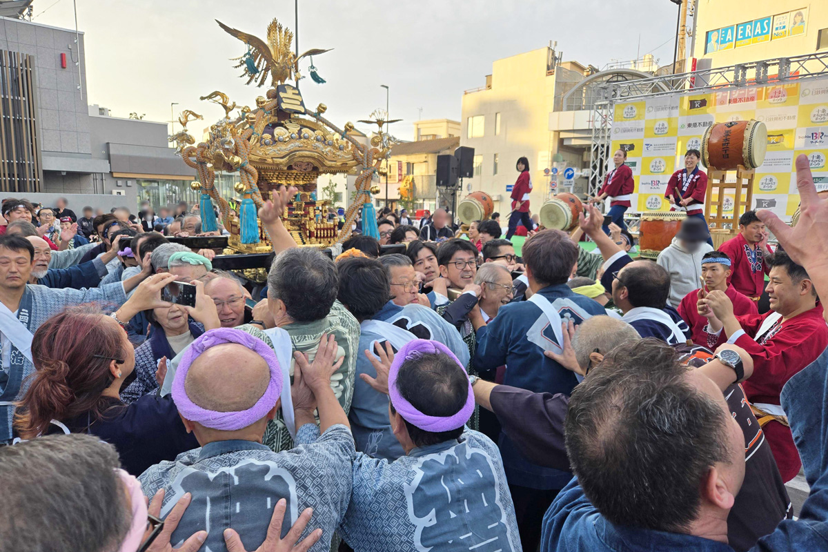 イベントのフィナーレには地元町会の若手精鋭たちが中心となって担ぐ神輿が登場。まつりの締めくくりとして法被姿の神輿衆が威勢の良い掛け声を上げながらロータリーを練り歩き、観客からは「初めて見た!すごいね」「もっと近くでみよう」と声が上がり、熱気も最高潮に。見事に大トリを飾りました。